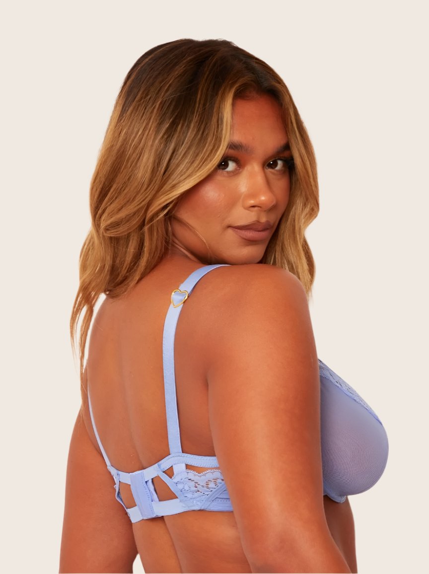 Poznaj biustonosz Artemis – koronkowy i pikantny, który udowadnia, że seksapil i siła idą w parze. Ten piękny biustonosz w marzycielskim odcieniu Carolina Blue doda Twojej górnej szufladzie drapieżnego charakteru dzięki głębokiemu dekoltowi na fiszbinach, dekoltowi peekaboo i koronkowym, siateczkowym skrzydełkom, które podkreślą Twoją figurę niczym bogini.