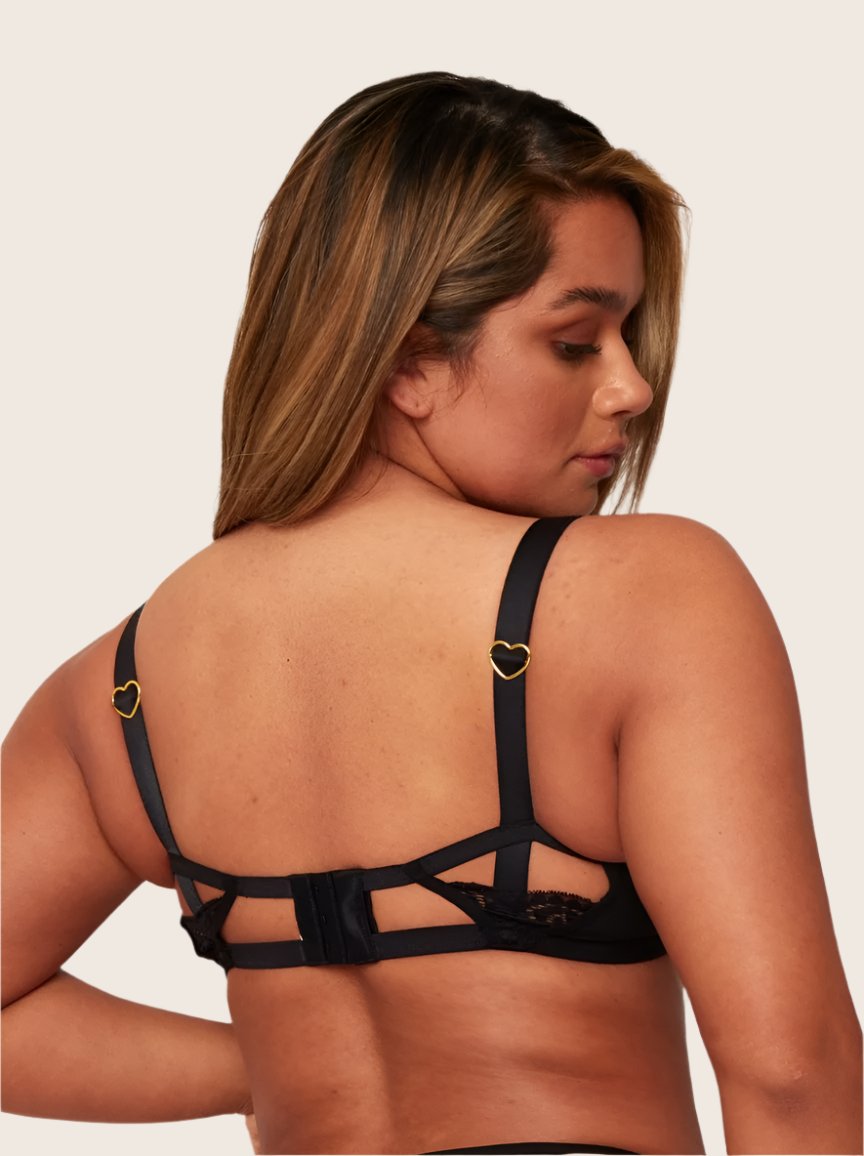 Biustonosz Artemis w kolorze czarnym to spełnienie Twoich marzeń o bieliźnie – elegancki, usztywniany i gotowy do podboju. Z seksownym wycięciem typu plunge, fiszbinami i odważnym dekoltem w szpic, Artemis przyciąga wzrok i dominuje w każdej chwili.