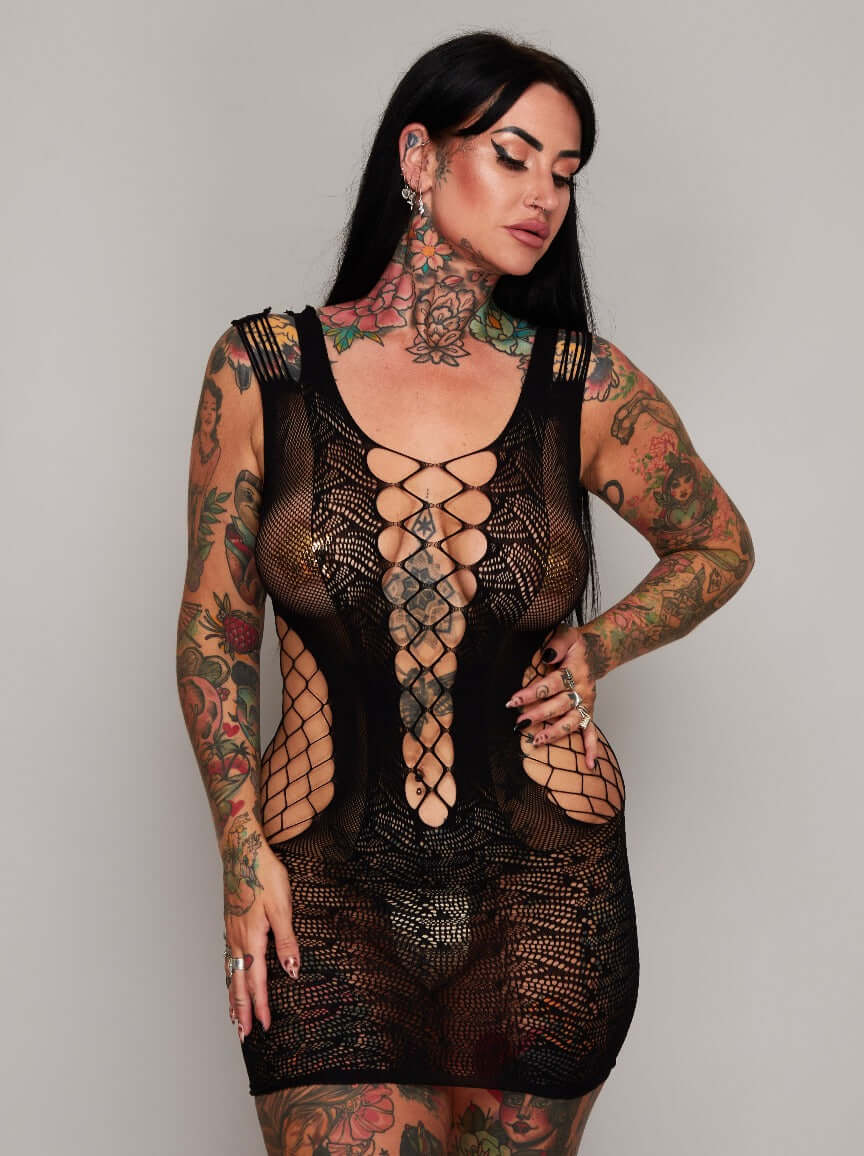 Uwolnij swoją dziką naturę w bodystockingu Brandy – diabelnie zniewalającym modelu od Brand X. Wykonany z ultraelastycznej koronki, która otula każdą krzywiznę, model Brandy to Twój bilet do podkręcenia atmosfery. Z odważnym, głębokim dekoltem i efektownymi wycięciami podkreślającymi talię, ten olśniewający model jest stworzony do uwodzenia.