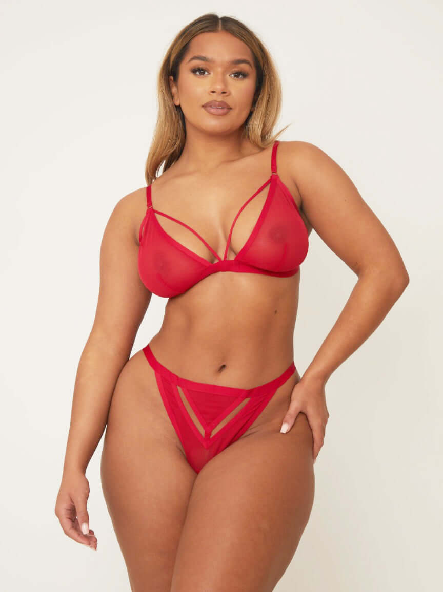 Poznaj Charli – Twoją ulubioną, gdy chcesz poczuć się „dopiero co to założyłaś, ale wciąż jesteś pełna energii”. Ten komplet w kolorze Chilli Red podgrzewa atmosferę miękką, przezroczystą siateczką, zalotnymi miseczkami i głębokim dekoltem, który mówi: „Obudziłam się w takiej sytuacji” (ale niech będzie 🔥). A, i czy wspominaliśmy już, że jest uszyta z ekologicznego materiału – dzięki czemu możesz czuć się równie dobrze, jak wyglądasz. 💋