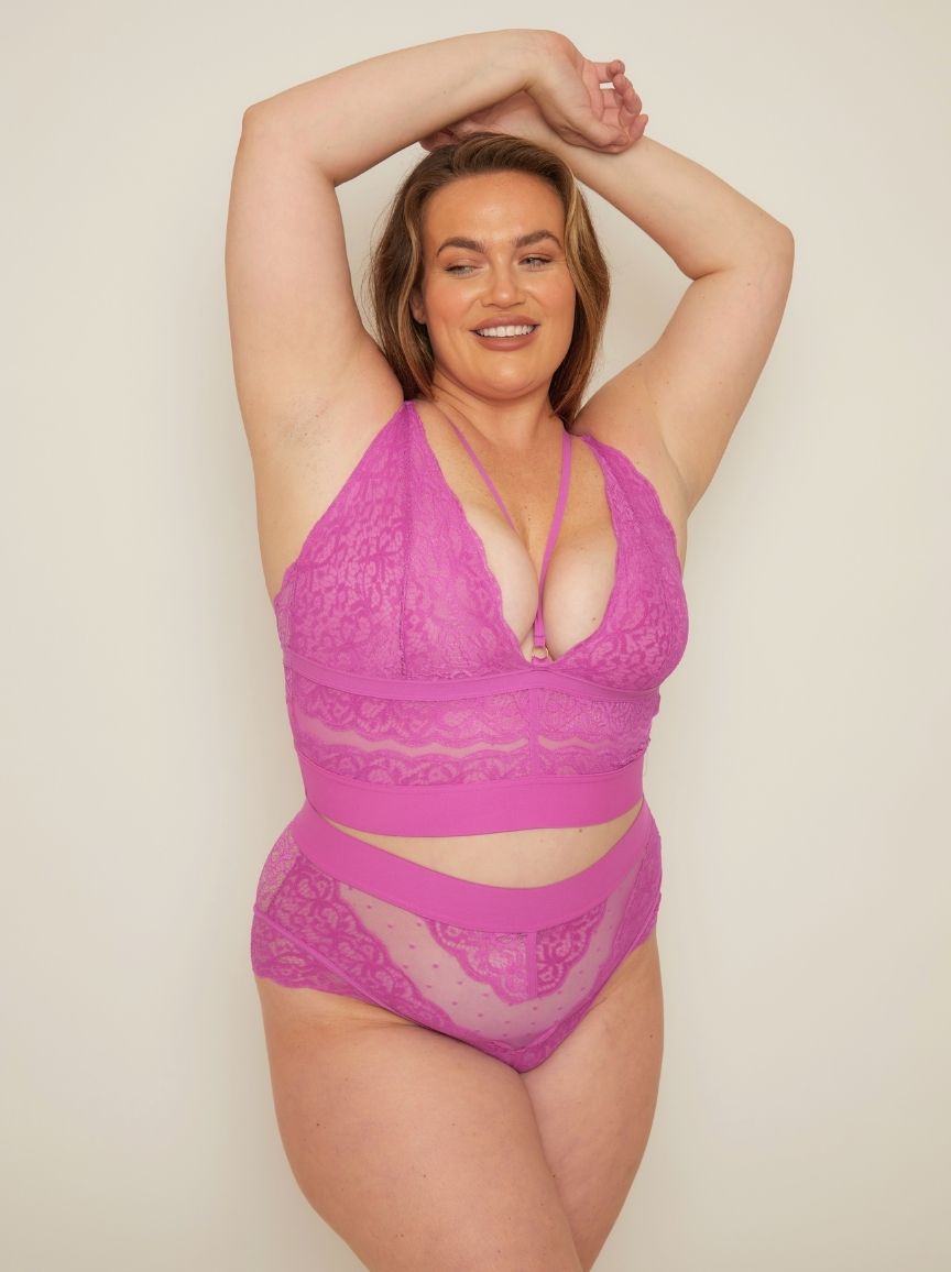 Poznaj Gię – tę, która zawsze kradnie show (i twoje serce). Z figlarnymi miseczkami w kratkę, charakterystyczną koronką, która szepcze „ooh la la”, i krojem, który sprawia wrażenie przytulenia, ale wygląda jak mrugnięcie okiem, jest dosłownie duszą towarzystwa w świecie bielizny.