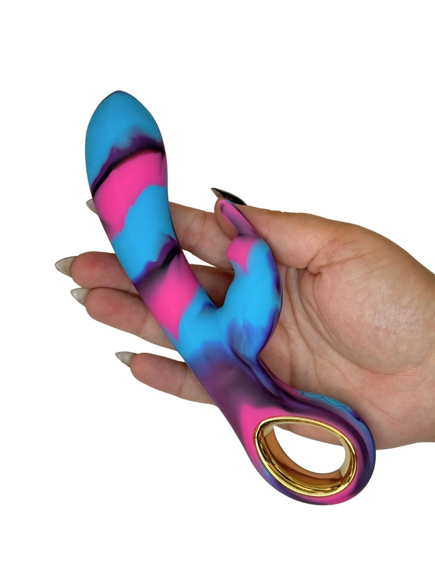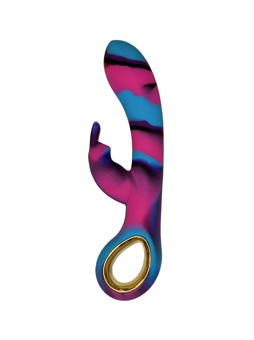 Odważna, żywa i bezkompromisowo figlarna – ta piękność emanuje neonowym różem, elektryzującym błękitem i głębokim fioletem, jakby właśnie zjechała z kosmicznego wybiegu. Dzięki złotej rączce z pętelką, która emanuje autentycznym luksusem, to nie tylko zabawka, ale i wyrazisty element.