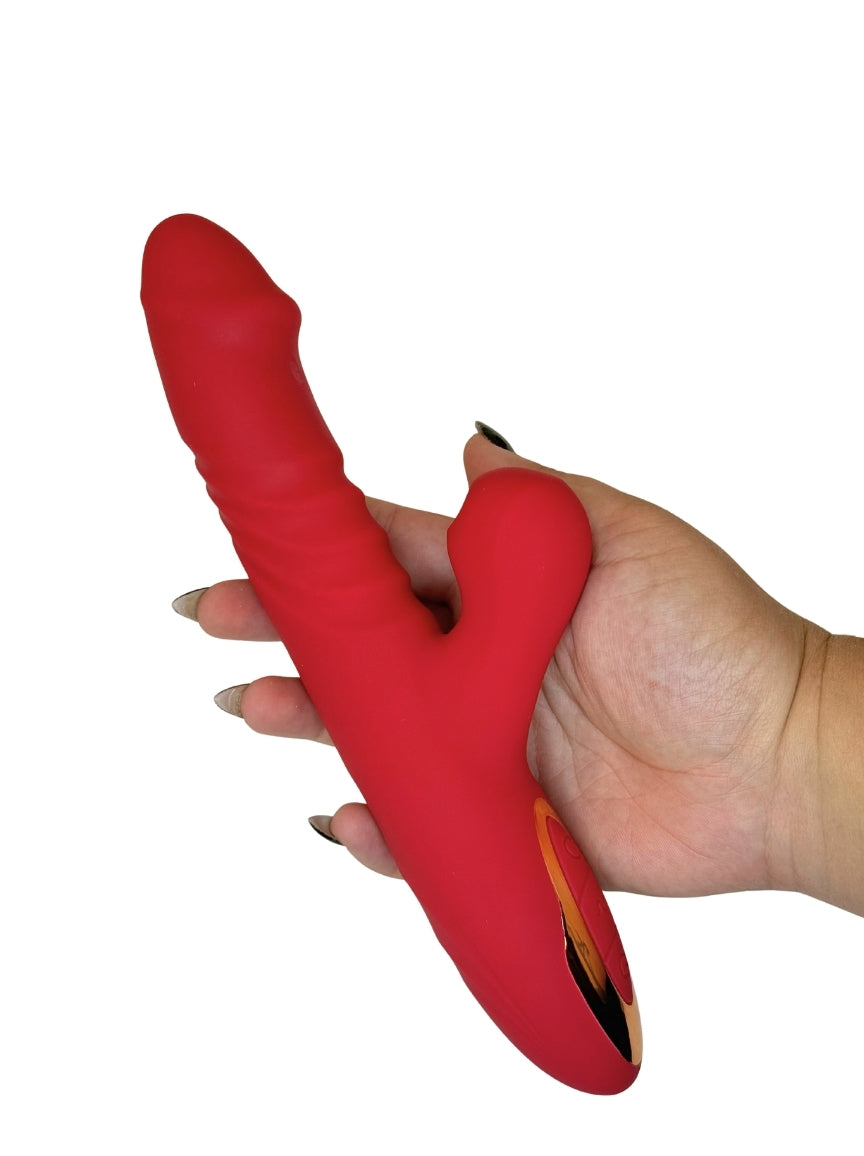 Poznaj Pana Thrusty Suxa , odważnego wielozadaniowca, który doskonale wie, jak przejąć kontrolę. Dzięki mocnemu ruchowi pchania ORAZ stymulacji ssącej, ten ognistoczerwony królik jest tu po to, by za każdym razem dostarczać eksplozywnej, pełnej rozkoszy rozkoszy.