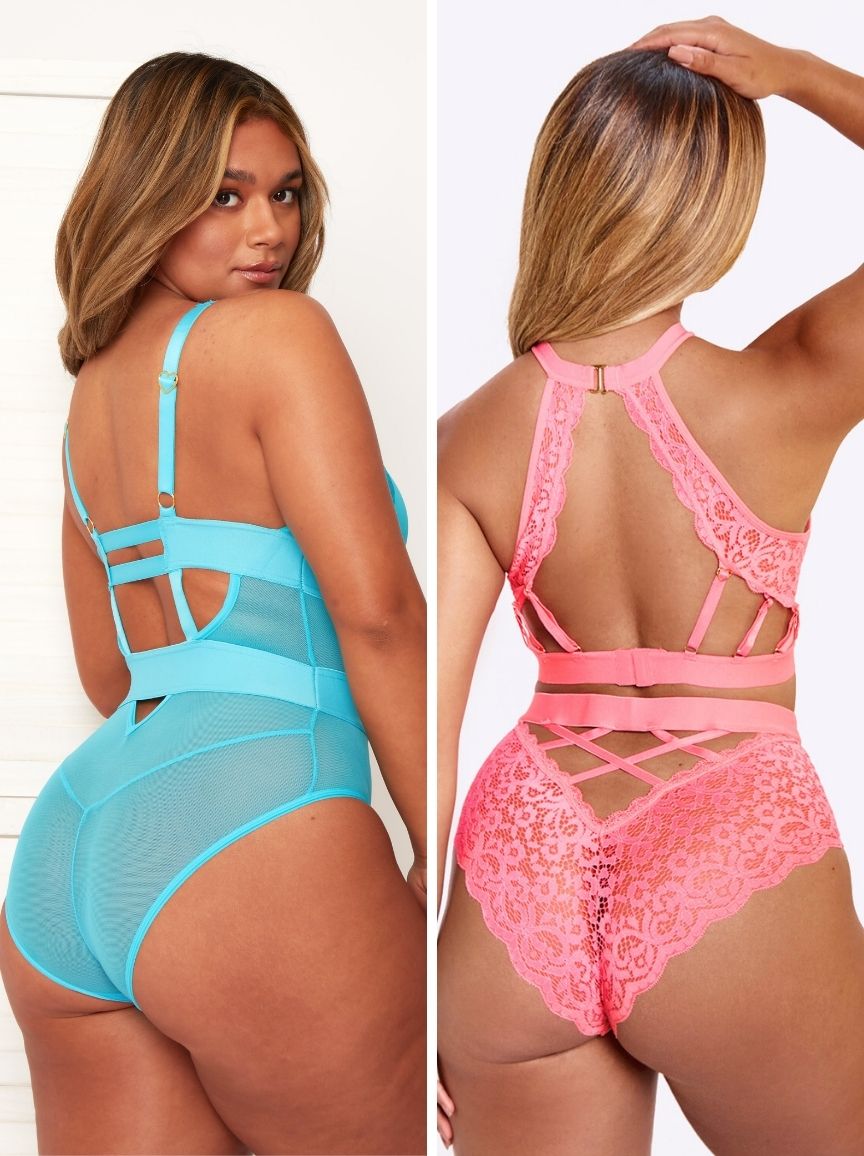 Ten zestaw Tutti Threesome zawiera body Alicia w kolorze Bluebird Blue oraz biustonosz i majtki Elektra w kolorze Rose Pink